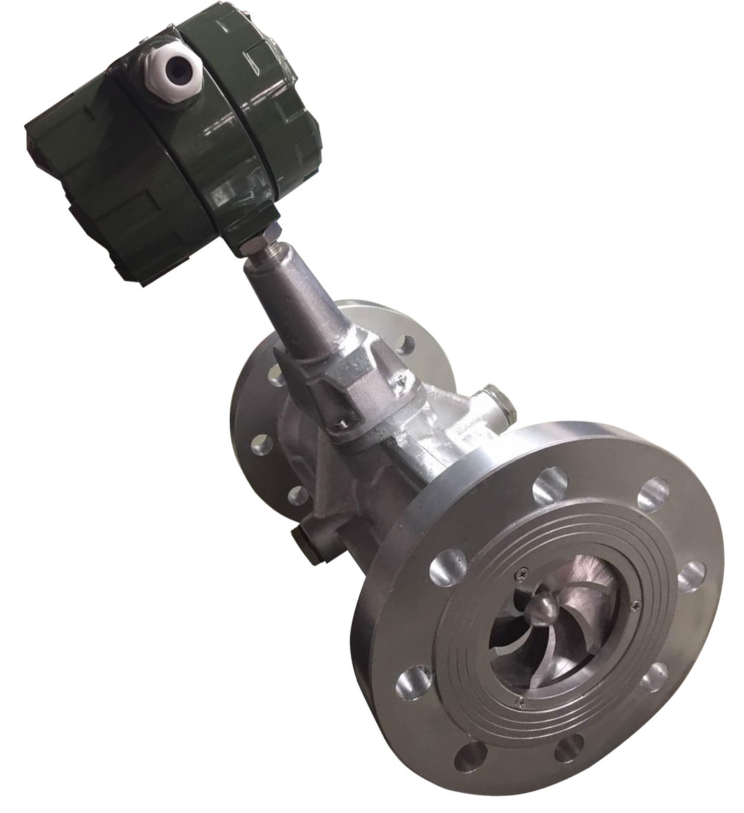當流體通過由螺旋形葉片組成的旋渦發(fā)生器后,流體被迫繞著發(fā)生體軸劇烈旋轉,形成旋渦。當流體進入擴散段時,旋渦流受到回流的作用,開始作二次旋轉,形成陀螺式的渦流進動現(xiàn)象。該進動頻率與流量大小成正比,不受流體物理性質(zhì)和密度的影響。檢測元件測得流體二次旋轉進動頻率,即測得流量;而且能在較寬的流量范圍內(nèi)獲得良好的線性度。